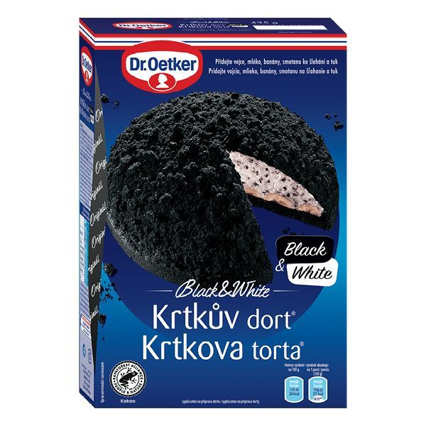 Jediná a pravá originálna Krtkova torta Dr. Oetker. Exkluzívna receptúra s intenzívnym čiernym kakaom, bez pridaných farbív.